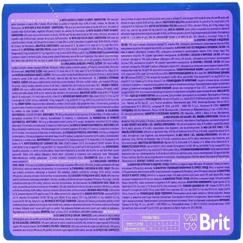 Упаковка вологого корму для кішок Brit Premium сімейна тарілка асорті 4 смаку 100 г х 12 шт (8595602