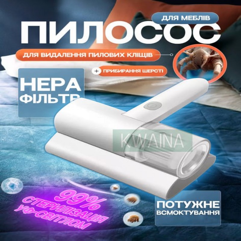 Пылесос портативный беспроводной с УФ стерилизацией для удаления пылевых клещей и очищения матрасов, подушек, мягкой мебели